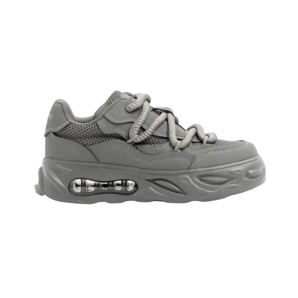 Zapatillas de mesh combinadas con símil cuero con base con cámara de aire. Con cordones redondeados anchos al tono. Contiene la marca bordada en el talón y además, una etiqueta de silicona de la marca en la lengueta.